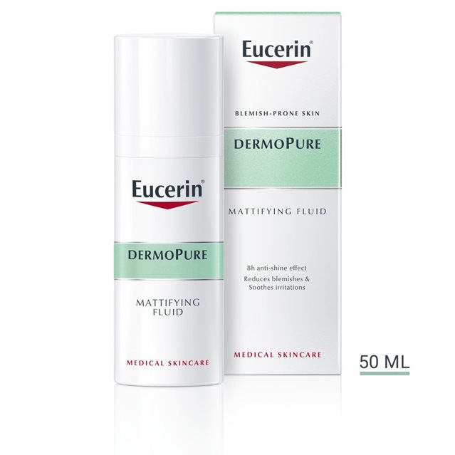 El innovador Eucerin DermoPURE Oil Control Fluido Facial Matificante ayuda a contrarrestar eficazmente los granos y las espinillas y a controlar las pieles grasas con impurezas a largo plazo. El Fluido Facial Hidratante Matificante contiene:
