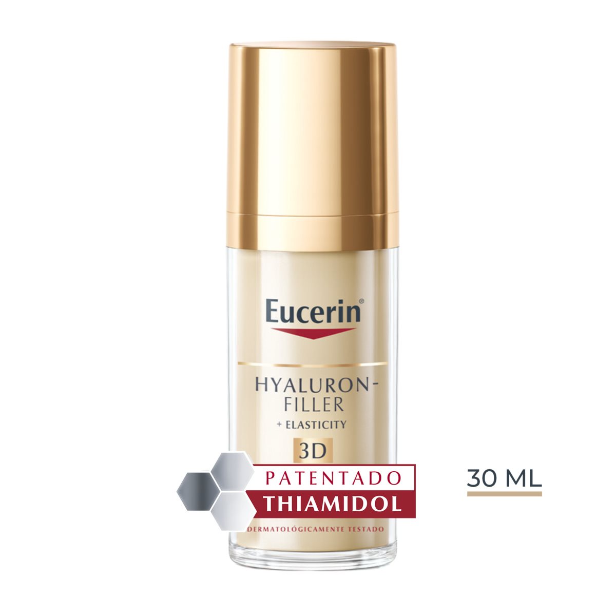El sérum contiene Ácido Hialurónico de alto y bajo peso molecular, que mejora la hidratación de la piel, pero no está formulado para reemplazar una crema de día o noche o una crema para el contorno de ojos especializada. Para conseguir unos resultados óptimos, te recomendamos utilizarlo en combinación con los otros productos de la gama Eucerin Hyaluron-Filler + Elasticity.