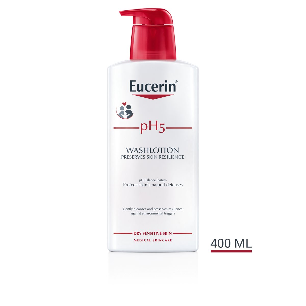 Eucerin pH5 Washlotion is a daily-use face and body cleanser that is free-from alkali soap. Extra-mild surfactants ensure that dry, sensitive skin is gently but effectively cleansed. The unique Eucerin pH Balance System gives the cleanser the optimal pH to protect skin’s natural defenses, to preserve its resilience and prevent it from drying out.
